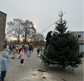 Ein festlich geschmückter Tannenbaum auf dem Schulhof sorgte in der Adventszeit für eine stimmungsvolle Atmosphäre und begleitete uns durch die letzten Schultage vor den Ferien.